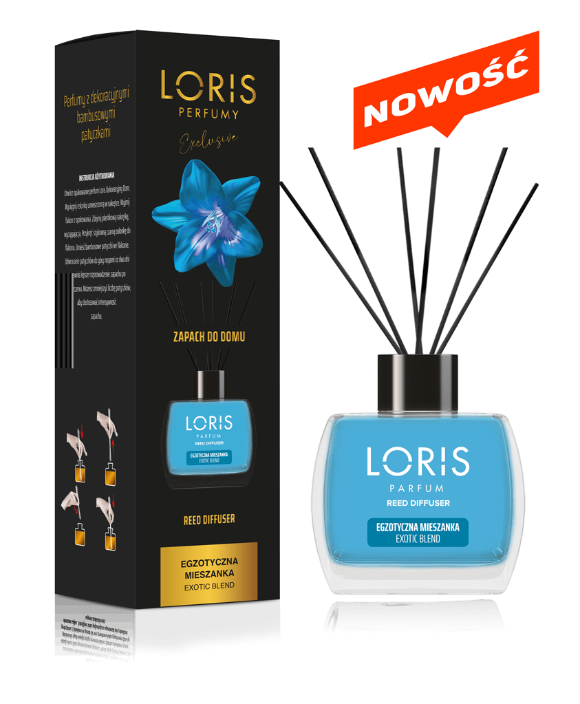 Exotic Blend – 120 ml Loris to zapach, który wprowadzi Twoje wnętrza w atmosferę egzotycznej świeżości i spokoju. Dzięki eleganckiemu designowi i intensywnym olejkom zapachowym. Twój dom lub biuro będą wypełnione pięknym zapachem, który sprzyja relaksowi i tworzy przytulną atmosferę. Aromat tego zapachu sprawia, że wnętrze staje się bardziej komfortowe i miłe do spędzania w nim czasu.